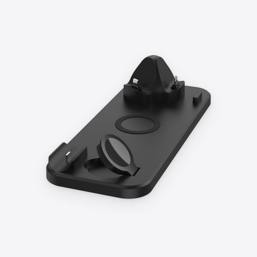 This is the best charging station I’ve found. It’s relatively inexpensive, looks great, feels nice to the touch, and offers plenty of charging options for your wearable and portable devices. Really like that you can charge your phone via wireless charge pad or via plug. In fact you can use the wireless pad for the phone, plug in your ipad, iwatch, and airpods, ALL at once using this station.